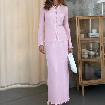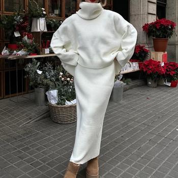 2025 kadın yüksek boyun örgü kazak ve etek seti boy kış iki parçalı kıyafet