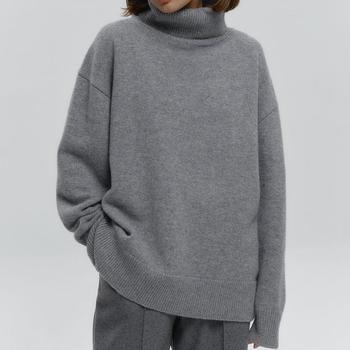 Kadın rahat Autumns kış balıkçı yaka örgü kazak uzun kollu düz renk gevşek Fit ön Logo ile sıcak Jumper